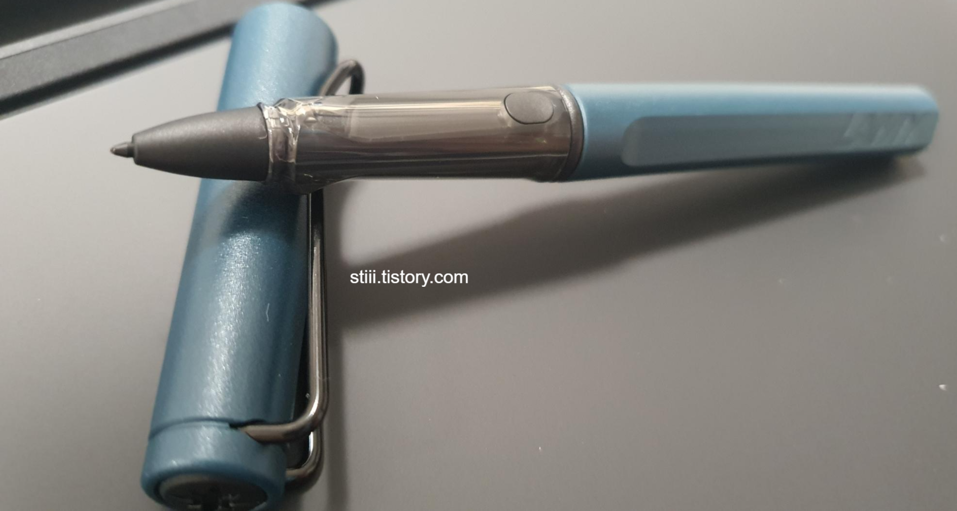 2. 버튼이 오리지널 펜보다 살짝 더 위쪽에 작게 위치해 있어서 실수로 눌리지 않는다.